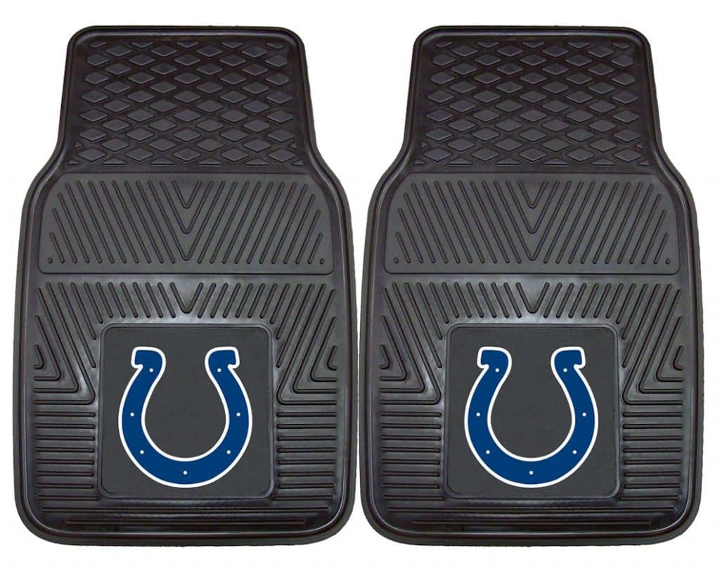 Indianapolis Colts Heavy Duty Vinyl Front Seat 2 Piece Car Mat Set – Welcome to Detroit Game Gear here is the product description. Protect your vehicle’s flooring while showing your team pride with this pair of car mats by FANMATS. 100% vinyl construction with non-skid backing ensures a rugged and safe product. Universal fit makes it ideal for most cars, trucks, SUVs, and RVs. They are approximately 18″ wide by 27″ in length. The officially licensed design is done in true team colors and is permanently molded for longevity. Two mats per set.