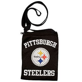 Pittsburgh Steelers Game Day Pouch – Welcome to Detroit Game Gear here is the product description. Small enough to carry around comfortably but large enough to hold your essentials! This NFL Game Day Pouch is perfect for easily accessing your cell phone, keys, money, chapstick and more. The pouch is made from NFL jersey material and features screen printed team graphics, a zipper closure and a 42″ length cross body nylon strap.