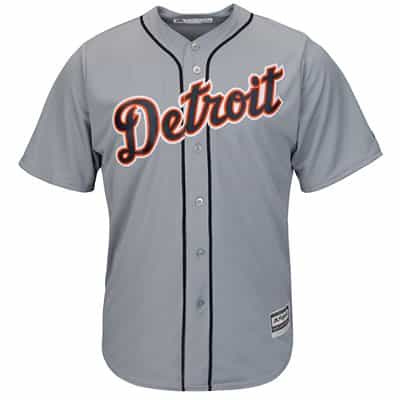Andrew Romine Detroit Tigers Cool Base Replica Road Jersey – The Name & Number is HAND SEWN on the back in authentic font triple layered tackle twill. This Detroit Tigers Majestic Cool Base Jersey is a revolutionary new lightweight and breathable button front jersey with the Detroit Tigers road gray color and styling. A printed tackle twill three color Detroit Tigers across the center of the chest makes it pop against the braid seams. This athletic, modern fit jersey also features a center back neck MLB silhouetted batter patch. A tagless neck label provides extra comfort, and an MLB performance transfer locker tag is located in the bottom left corner of the front of this 100% polyester Majestic Cool Base Road Jersey.