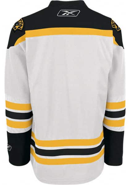 This is the NHL Premier Boston Bruins Jersey by Reebok, made of high quality polyester fabric with solid mesh inserts for ventilation and a embroidered applique front crest.