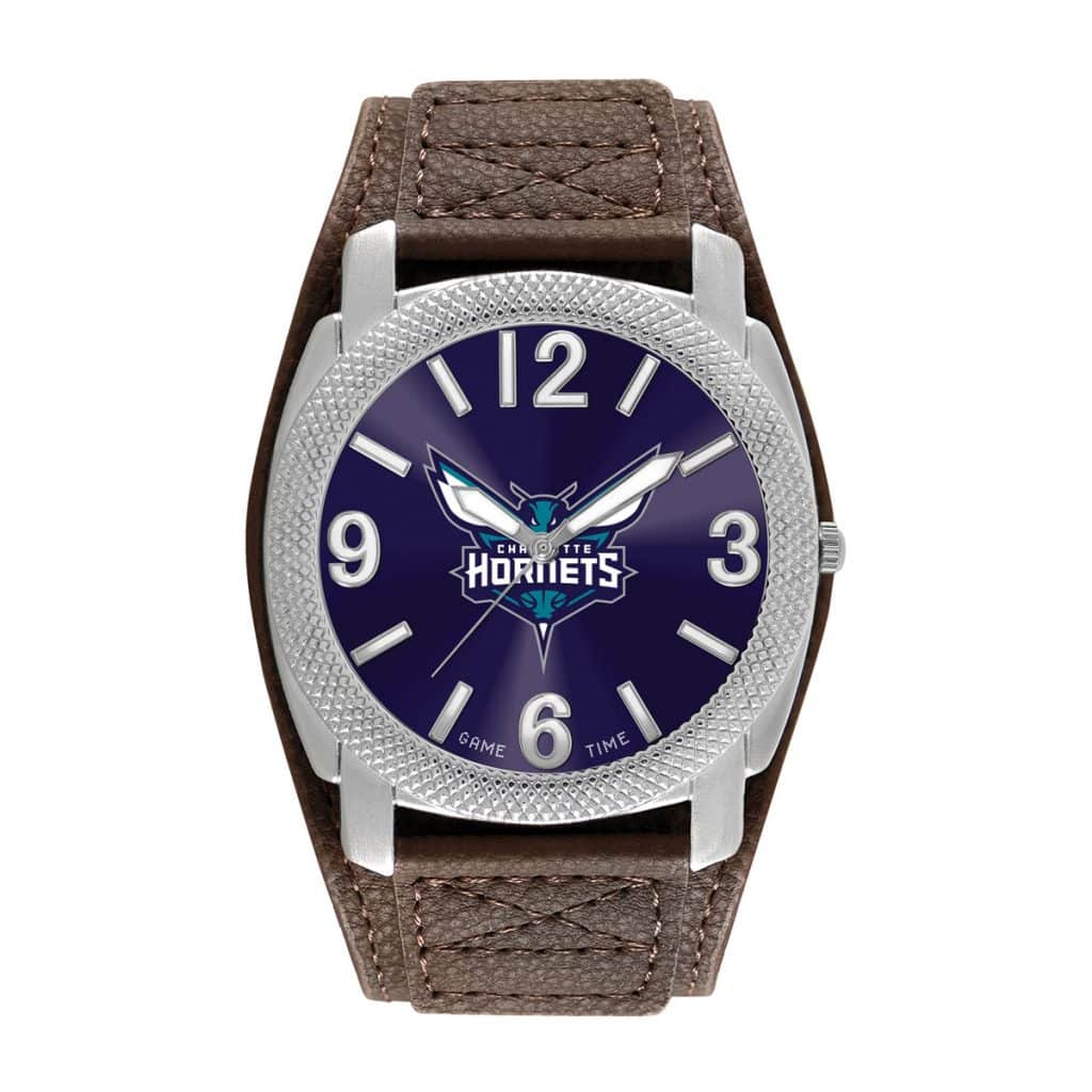 Charlotte Hornets Mens Quartz Analog Defender Watch – Charlotte Hornets Mens Quartz Analog, Silver Round Case, Brown Cuff, 45Mm “Defender” – Made By Gametime