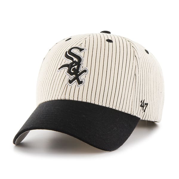 Chicago White Sox 47 Brand Black Pinstripe Two Tone Adjustable Hat – Made by 47 Brand and sold by Detroit Game Gear. Raised embroidery at front, officially licensed and one size fits most.
