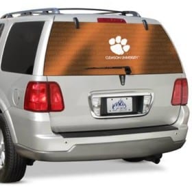 Clemson Tigers Rear Window Film – Welcome to Detroit Game Gear here is the product description. This revolutionary line of Officially Licensed graphical window film is the ultimate vehicle customization! It reduces harmful UV rays and makes the interior temperature cooler. It also features one-way vision film… you can see out, but they can’t see in. Made of professional grade material, and is quick and easy to install. Works on most pickups, SUV’s, mini vans, station wagons and many more! 66″x24″ in size.