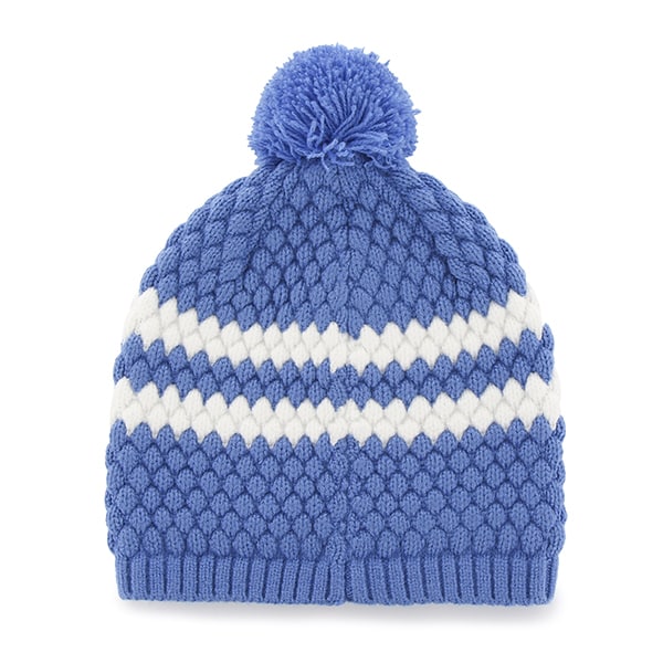 Detroit Lions Kendall Beanie Blue Raz 47 Brand Womens Hat – Made by 47 Brand and sold by Detroit Game Gear. Raised embroidery at front, officially licensed and one size fits most.