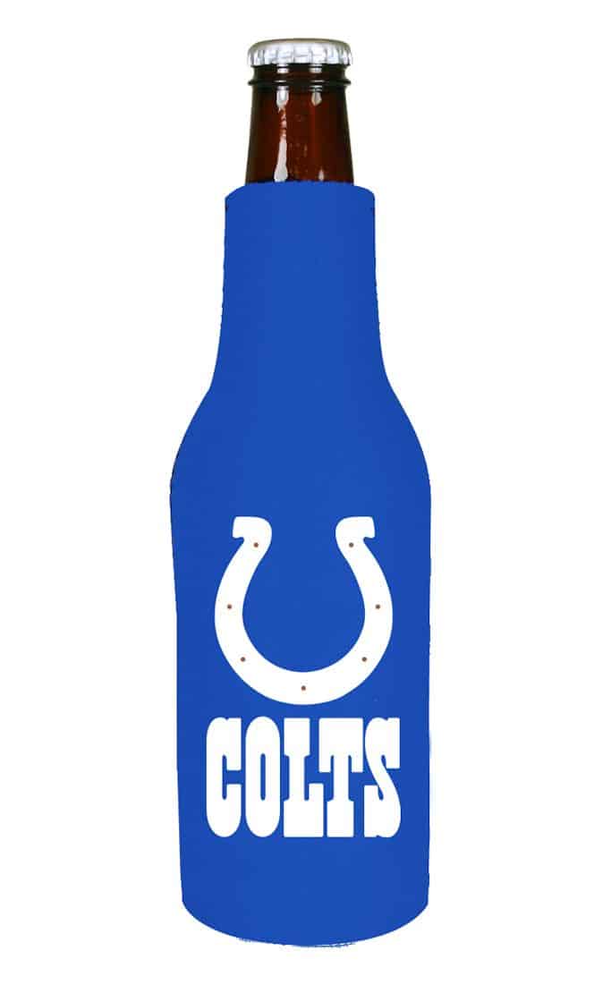 Indianapolis Colts Bottle Suit Holder – Welcome to Detroit Game Gear here is the product description. These bottle holders are constructed from 3mm Neoprene “Wetsuit” rubber, and will hold a longneck bottle. They are designed to keep your favorite beverage COLD… and your hands WARM! The full glued-in bottom means your beer won’t drip on you! The neoprene construction & the zipper makes it easy to remove the bottle from the holder – no pliers needed. It