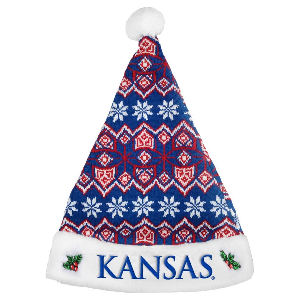 Kansas Jayhawks 2015 Knit Christmas Santa Hat – These Christmas Santa Hats come in vibrant team colors with a huge team logo as the center point. Your favorite team’s name is embroidered across the lower part of the hat and centered in the front. Celebratethe christmas holiday in grand holiday style with these one size fits all santa hats!