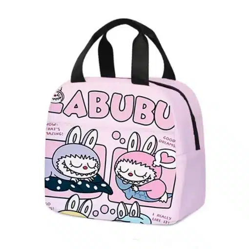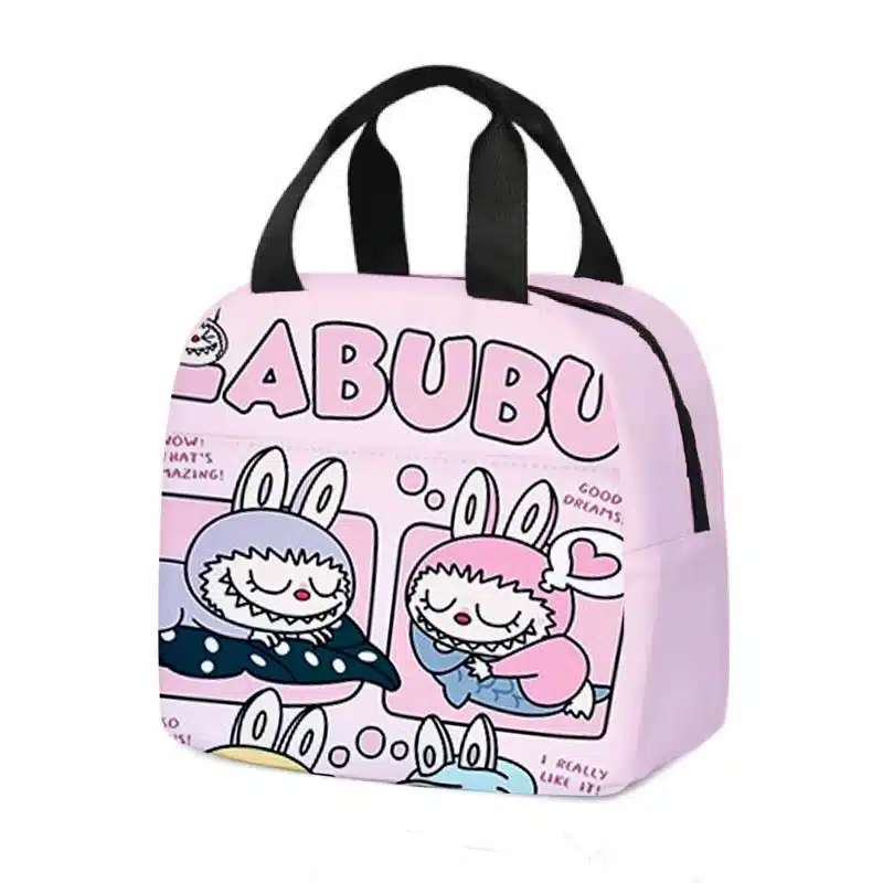 LABUBU Pink Cute Monster Printed Insulated Lunch Bag