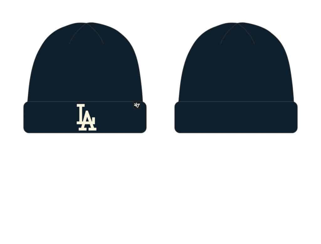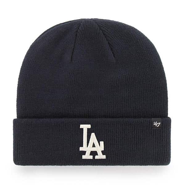 Los Angeles Dodgers 47 Brand Navy Raised Cuff Knit Hat – Made by 47 Brand and sold by Detroit Game Gear. Raised embroidery at front, officially licensed and one size fits most.