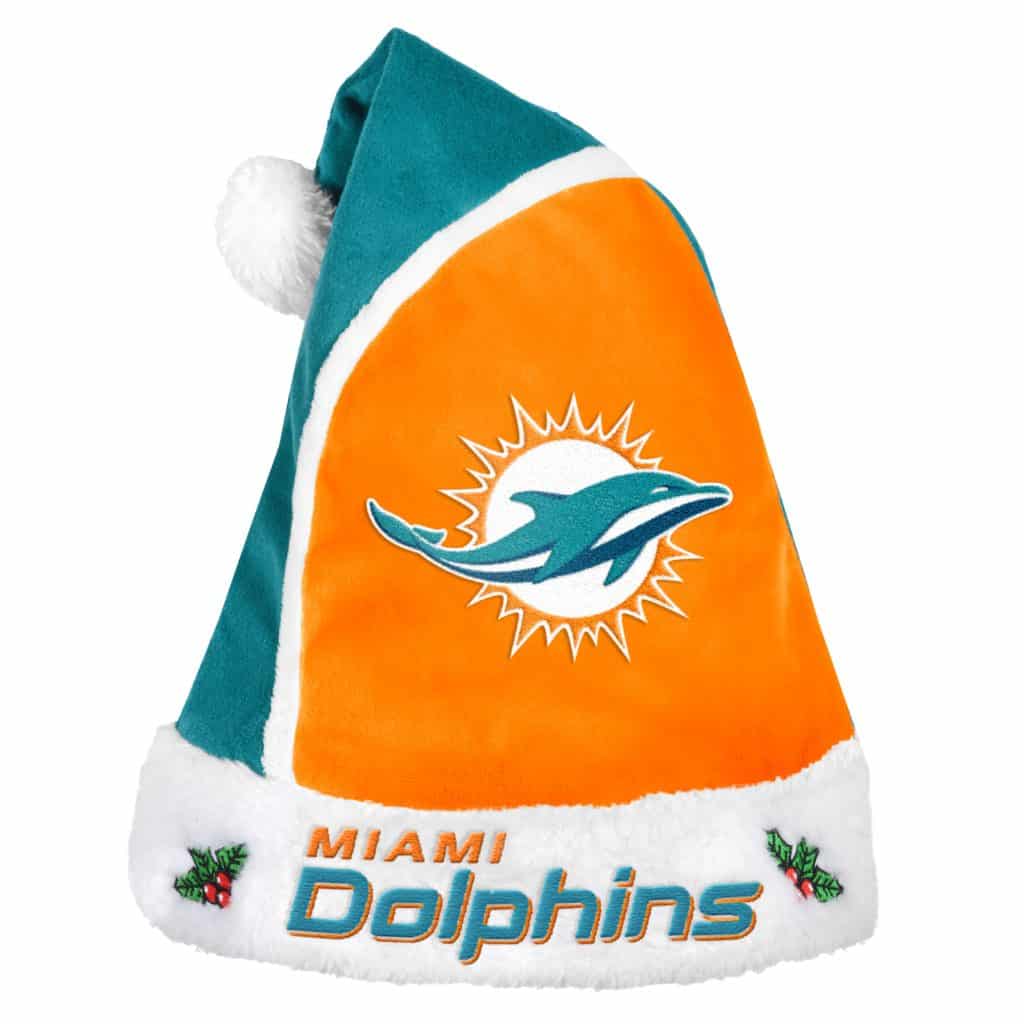 Miami Dolphins 2015 Christmas Santa Hat – These Christmas Santa Hats come in vibrant team colors with a huge team logo as the center point. Your favorite team’s name is embroidered across the lower part of the hat and centered in the front. Celebratethe christmas holiday in grand holiday style with these one size fits all santa hats!