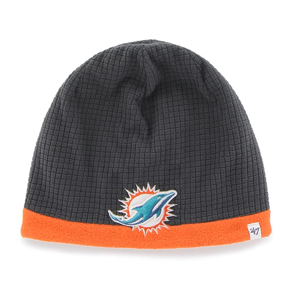 Miami Dolphins Grid Fleece Beanie Charcoal 47 Brand YOUTH Hat – Made by 47 Brand and sold by Detroit Game Gear. Raised embroidery at front, officially licensed and one size fits most.