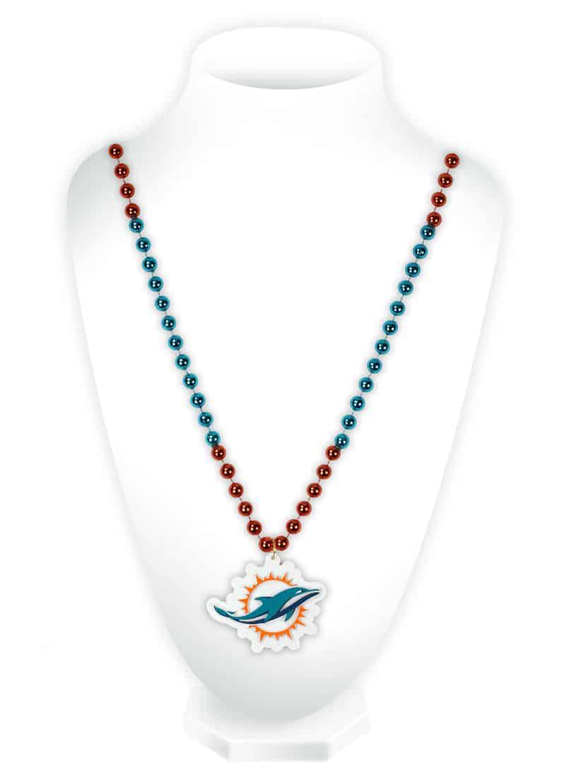 Miami Dolphins Mardi Gras Beads with Medallion