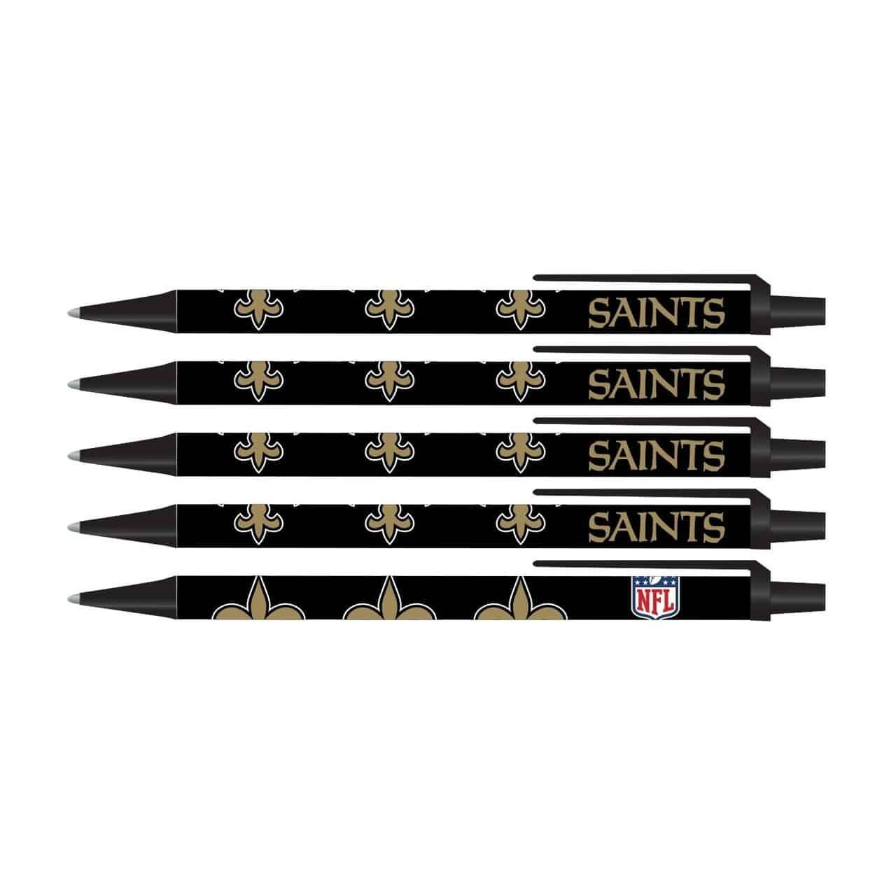 New Orleans Saints Click Pens – 5 Pack – Welcome to Detroit Game Gear here is the product description. Write in style with these retractable plastic ballpoint pens! The pens contain black ink and features your team’s name and logos. Each pack includes 5 pens. Made By Pro Specialties Group