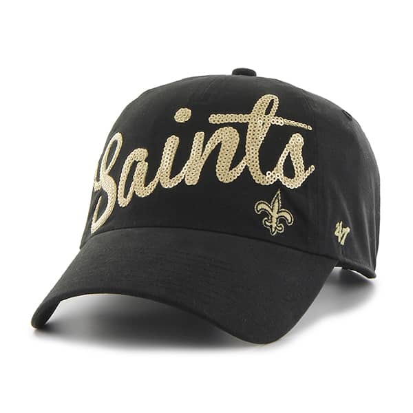 New Orleans Saints Sparkle Script Clean Up Black 47 Brand Womens Hat – Made by 47 Brand and sold by Detroit Game Gear. Raised embroidery at front, officially licensed and one size fits most.
