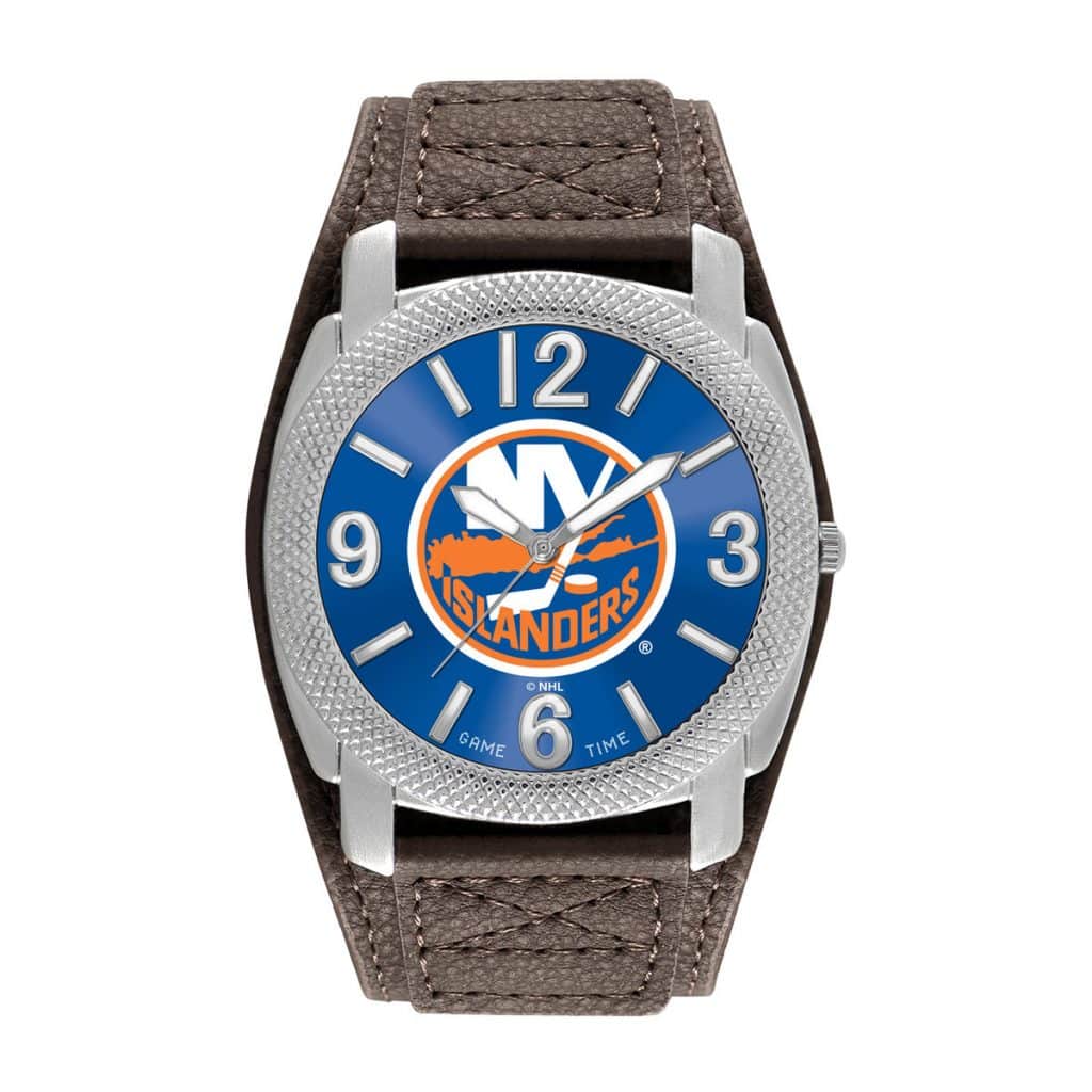 New York Islanders Mens Quartz Analog Defender Watch – New York Islanders Mens Quartz Analog, Silver Round Case, Brown Cuff, 45Mm “Defender” – Made By Gametime