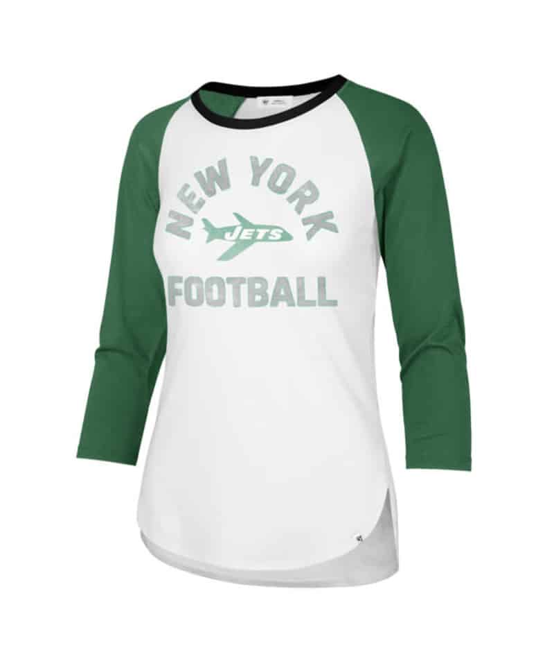 New York Jets Women’s 47 Brand Legacy White Wash Frankie Raglan LS Tee