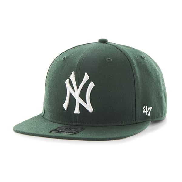 New York Yankees Sure Shot Dark Green 47 Brand Adjustable Hat-Made by Brand and sold by Detroit Game Gear. Raised embroidery at front, officially licensed and one size fits most.
