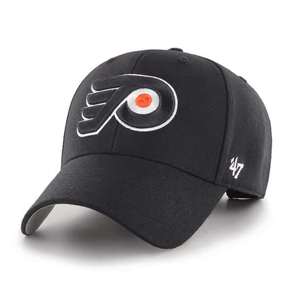 Philadelphia Flyers 47 Brand Black MVP Adjustable Hat – Made by 47 Brand and sold by Detroit Game Gear. Raised embroidery at front, officially licensed and one size fits most.