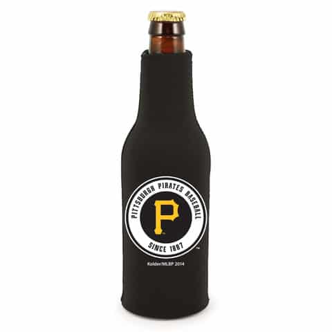 Pittsburgh Pirates Bottle Suit Holder – Welcome to Detroit Game Gear here is the product description. These bottle holders are constructed from 3mm Neoprene “Wetsuit” rubber, and will hold a longneck bottle. They are designed to keep your favorite beverage COLD… and your hands WARM! The full glued-in bottom means your beer won’t drip on you! The neoprene construction & the zipper makes it easy to remove the bottle from the holder – no pliers needed. It’s stretchable, washable and foldable. Made by Kolder.