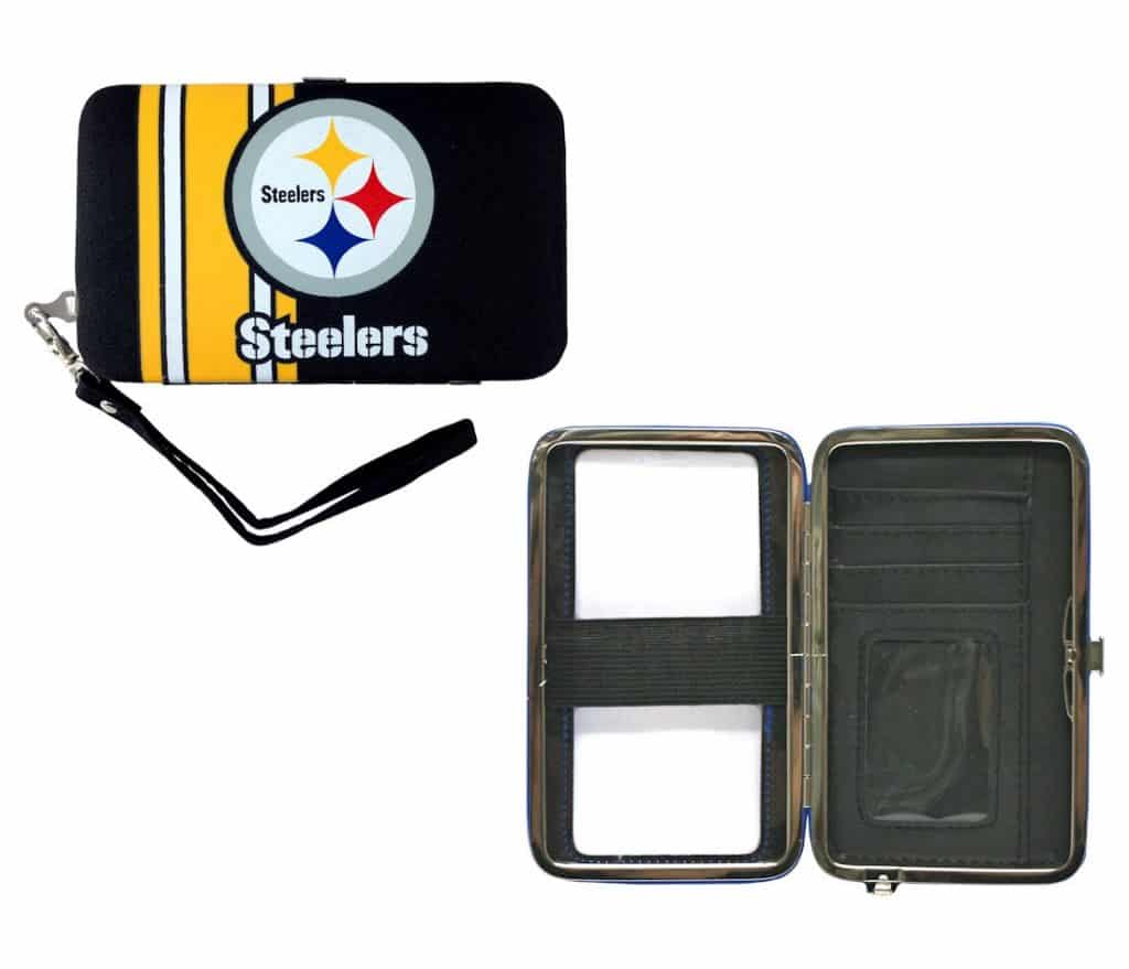 Pittsburgh Steelers Shell Wristlet – Welcome to Detroit Game Gear here is the product description. This handy hard case wristlet/purse is perfect for going to a game or bar, when you don