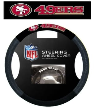 San Francisco 49ers Mesh Steering Wheel Cover – Welcome to Detroit Game Gear here is the product description. Drive in style with these high quality steering wheel covers! The steering wheel cover is made of polysuede and mesh for a comfortable grip and features your favorite team’s logo. The steering wheel cover easily stretches to fit car, truck and SUV steering wheels. The slip on in seconds, with no lacing required. Made by Fremont Die.