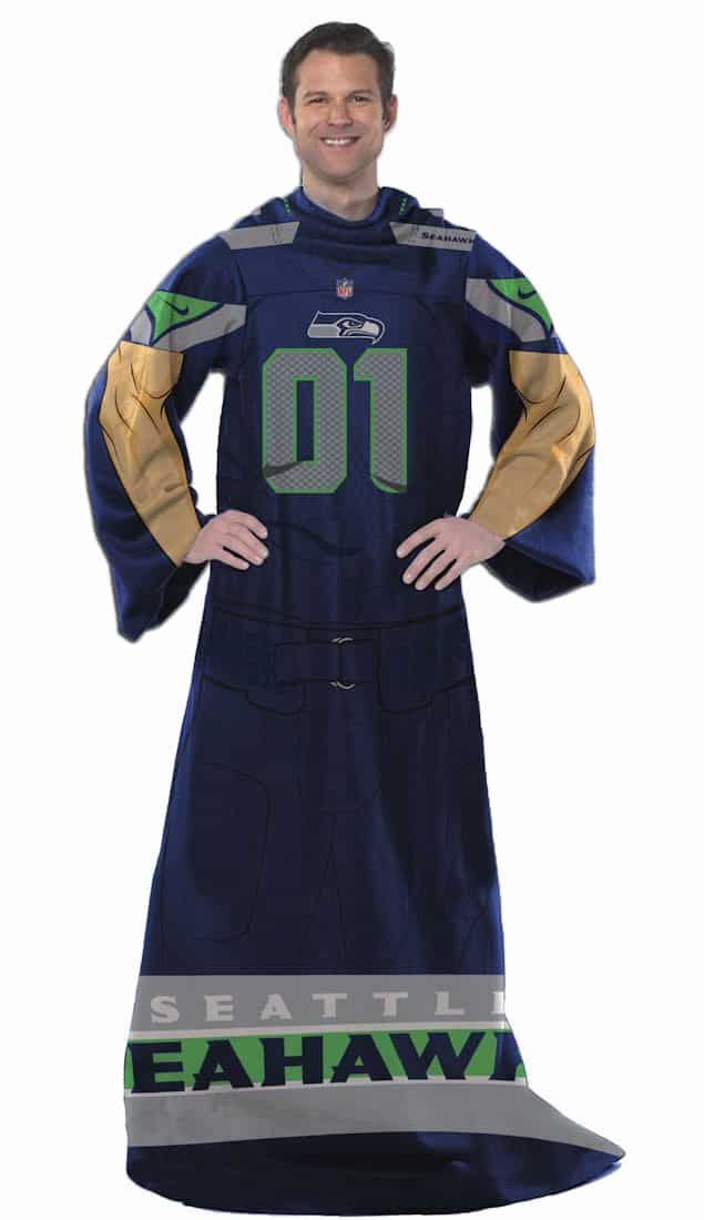 Seattle Seahawks Comfy Throw Blanket With Sleeves – Player Design