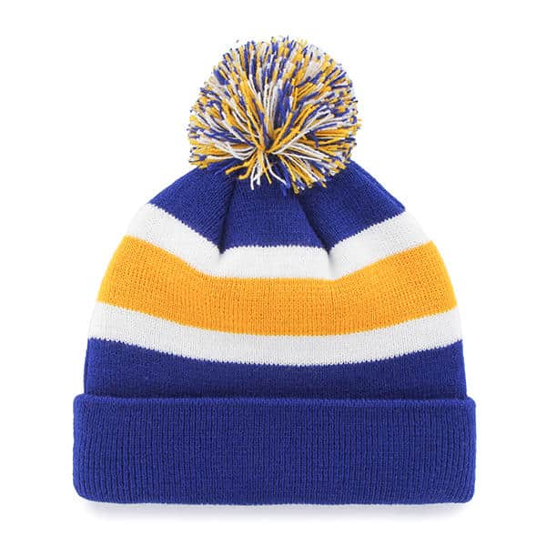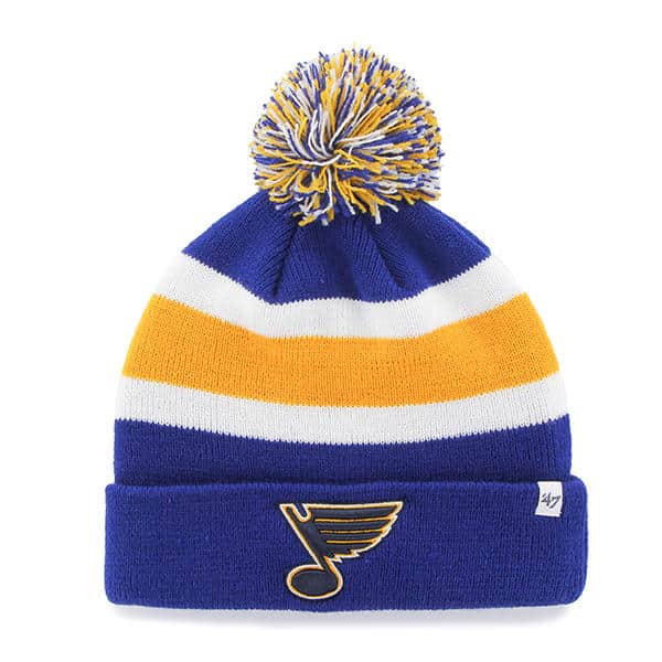 St. Louis Blues 47 Brand Royal Blue Breakaway Cuff Knit Hat – Made by 47 Brand and sold by Detroit Game Gear. Raised embroidery at front, officially licensed and one size fits most.