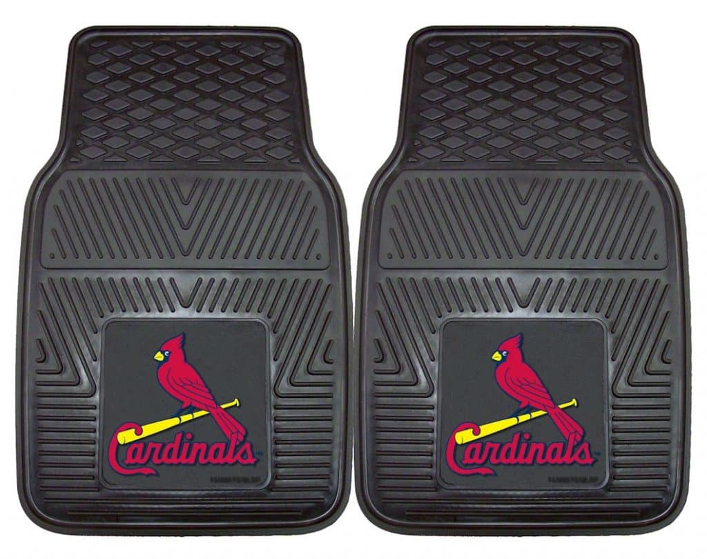 St. Louis Cardinals Heavy Duty 2-Piece Vinyl Car Mats – Welcome to Detroit Game Gear here is the product description. Protect your vehicle’s flooring while showing your team pride with this pair of car mats by FANMATS. 100% vinyl construction with non-skid backing ensures a rugged and safe product. Universal fit makes it ideal for most cars, trucks, SUVs, and RVs. They are approximately 18″ wide by 27″ in length. The officially licensed design is done in true team colors and is permanently molded for longevity. Two mats per set.