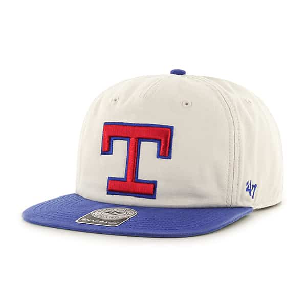 Texas Rangers Marvin Captain Rf Natural 47 Brand Adjustable Hat – Made by Brand and sold by Detroit Game Gear. Raised embroidery at front, officially licensed and one size fits most.
